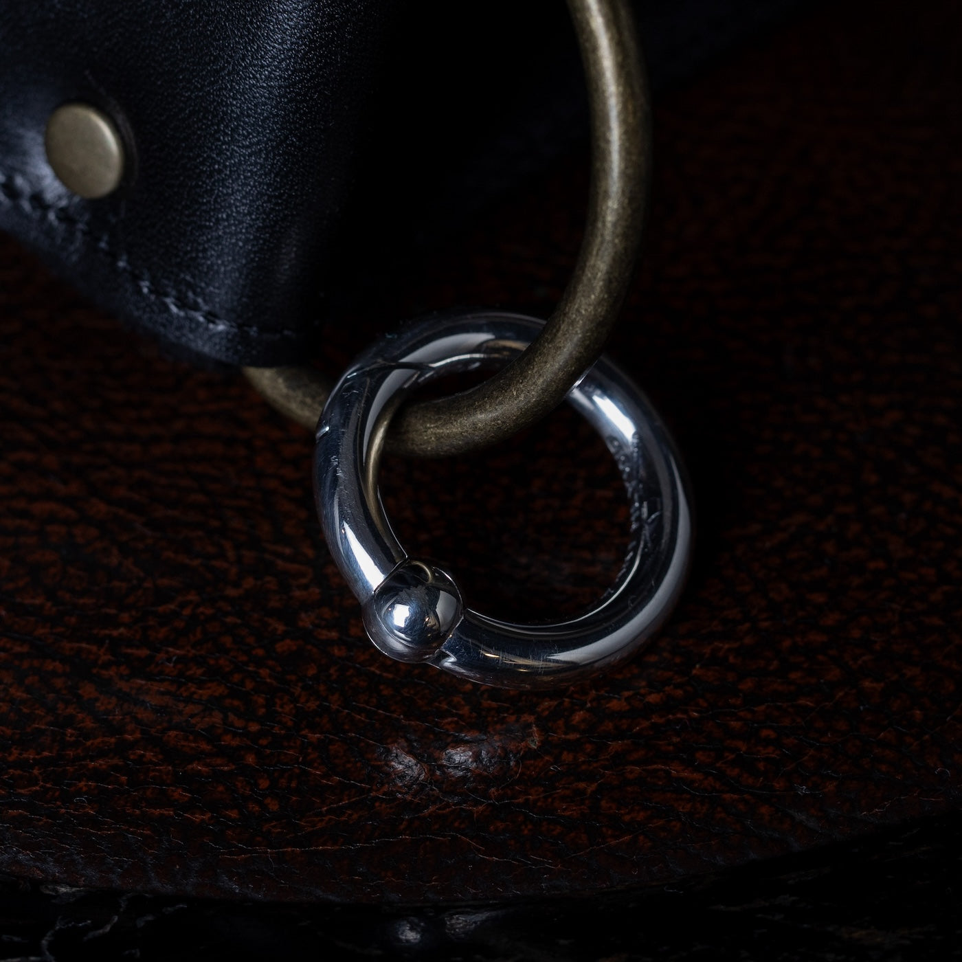 This handcrafted, solid carabiner ring is made of 925 sterling silver and has a spring-loaded closure. It's perfect for holding your chains and/or keys with a simple push. It's a great modular piece that fits with multiple Good Art pieces.
