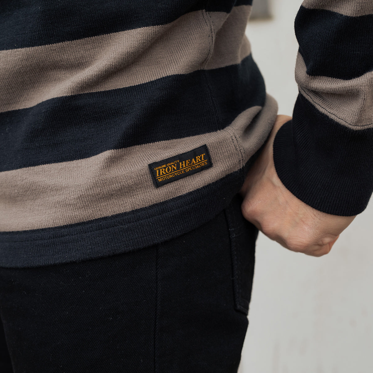 Heavyweight long-sleeve knitted cotton sweater with big stripes. One-washed to minimize/eliminate shrinkage. A heavy and strong sweater.