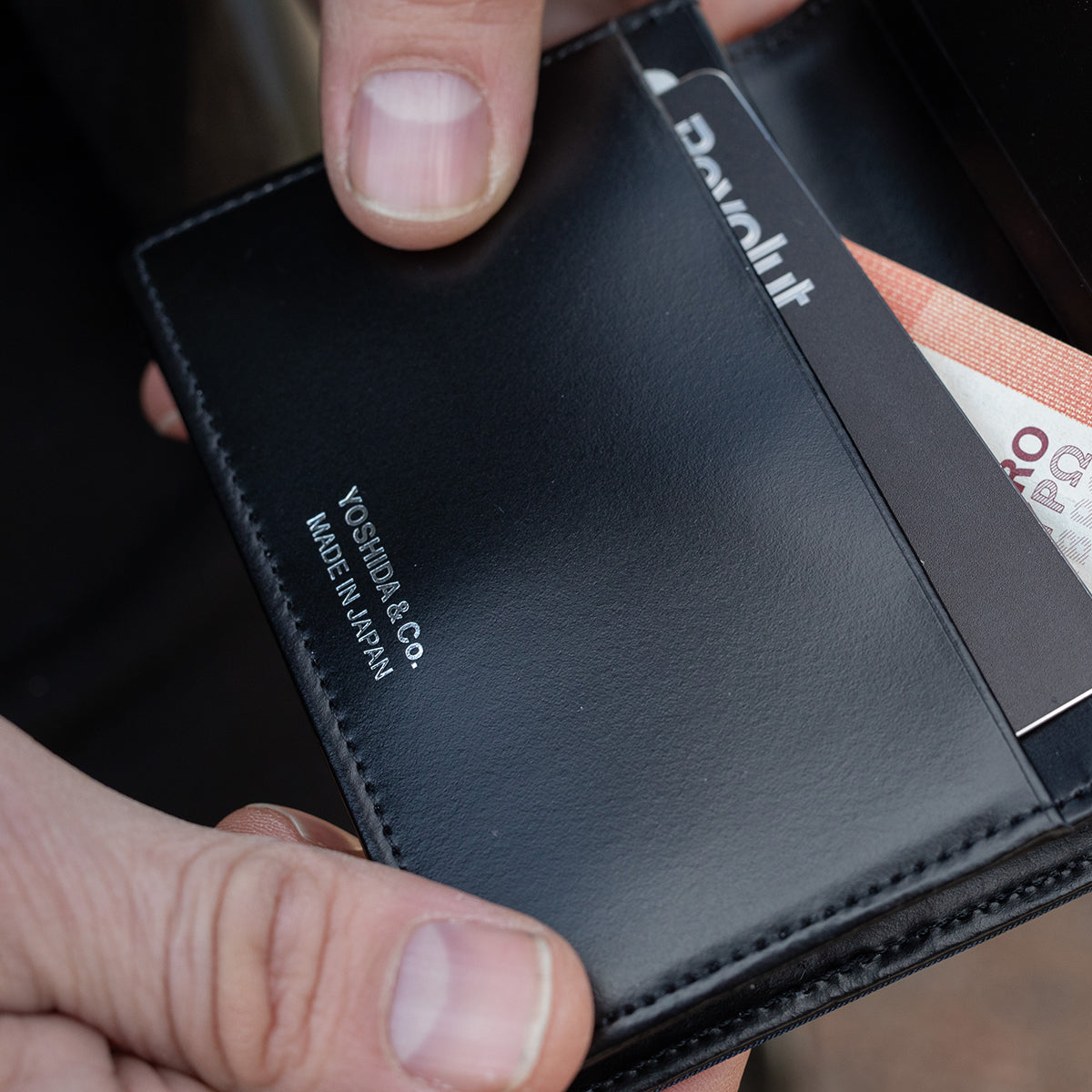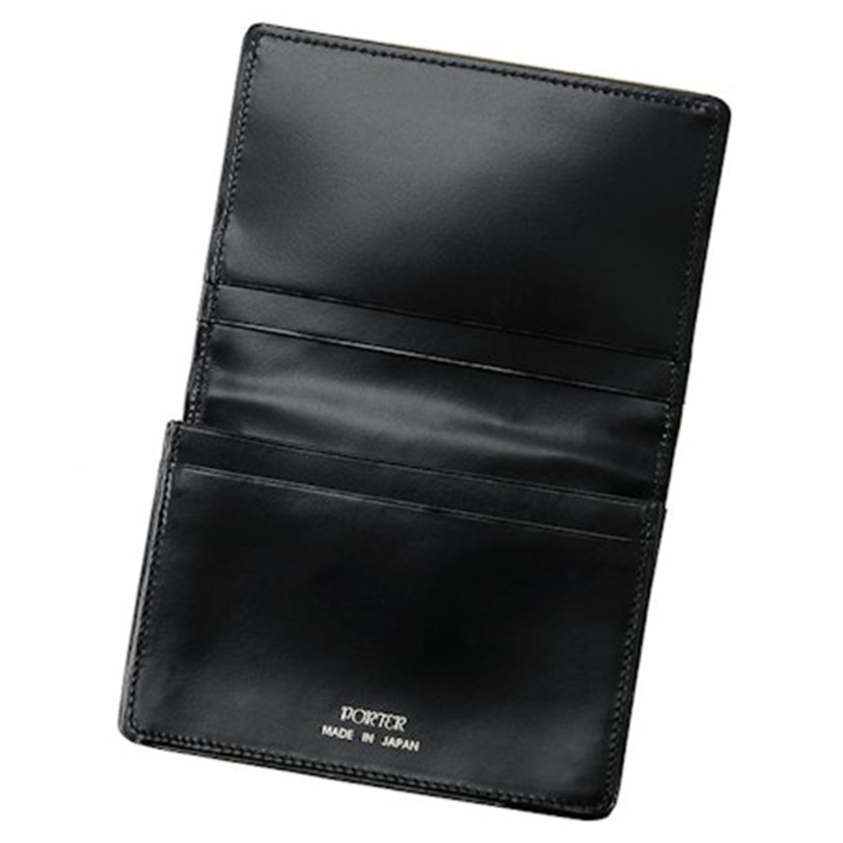 This card wallet is made from original camouflage nylon material by Yoshida & Co. and cowhide leather. This card case has a wide gusset and can hold many cards. On the front exterior is tap-and-go card pocket with a laser-cut PORTER logo. The contrast between the glossy nylon twill exterior and high-quality leather interior is appealing as well.