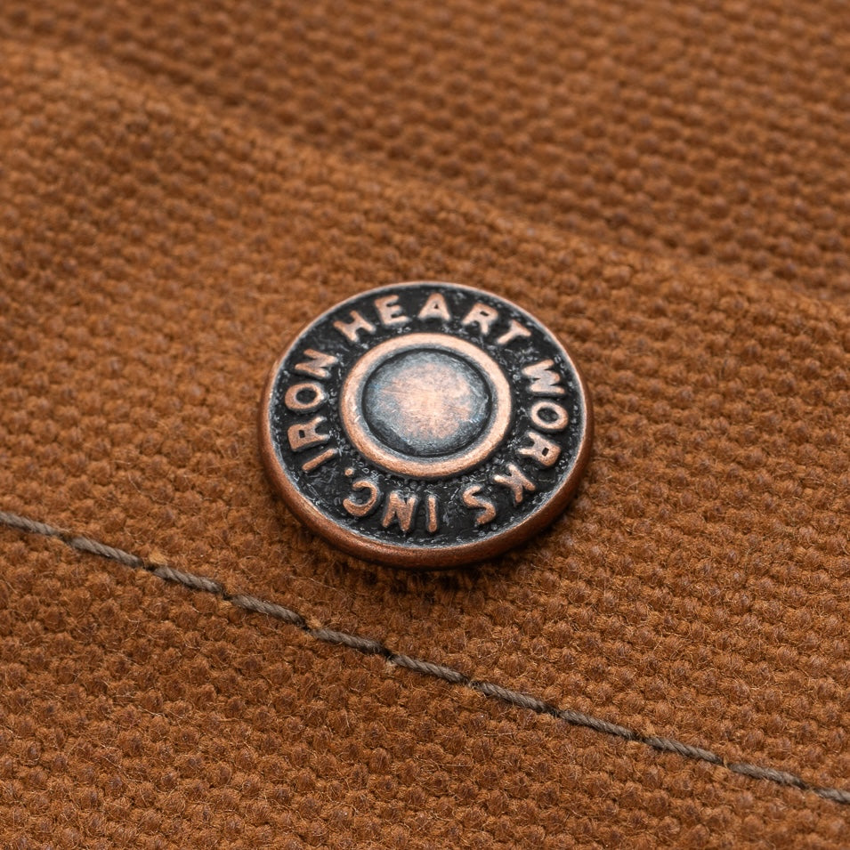 Iron Heart introduces a new chore jacket cut, blending practicality with contemporary style. This chore jacket have a more versatile pocket layout than previous Iron Heart coveralls and a slimmer, more flattering silhouette. Key features of this updated design include flapless chest pockets with pen holders inspired by our signature work shirts and large flap-down waist pockets that double as side-entry hand warmers.