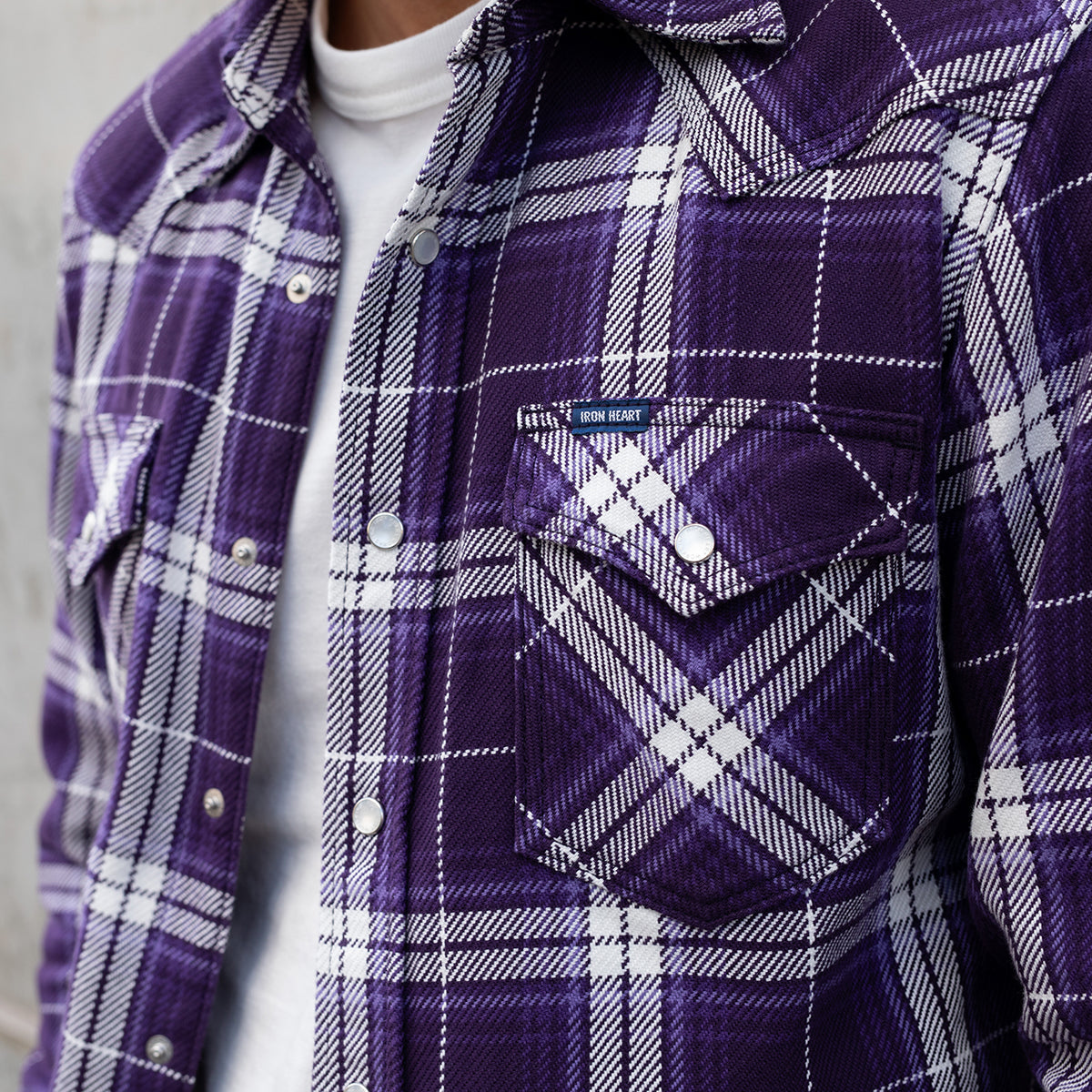SS26 - 9oz Selvedge Flannel Western Shirt - Purple Check