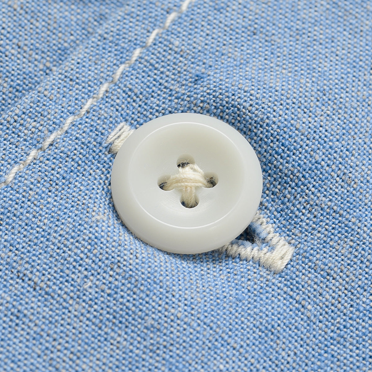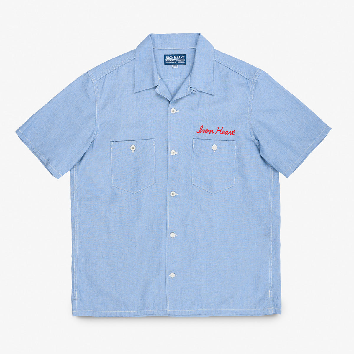 SS26 - 5oz Cotton Linen Open Collar Short Sleeve Shirt - Sax Blue