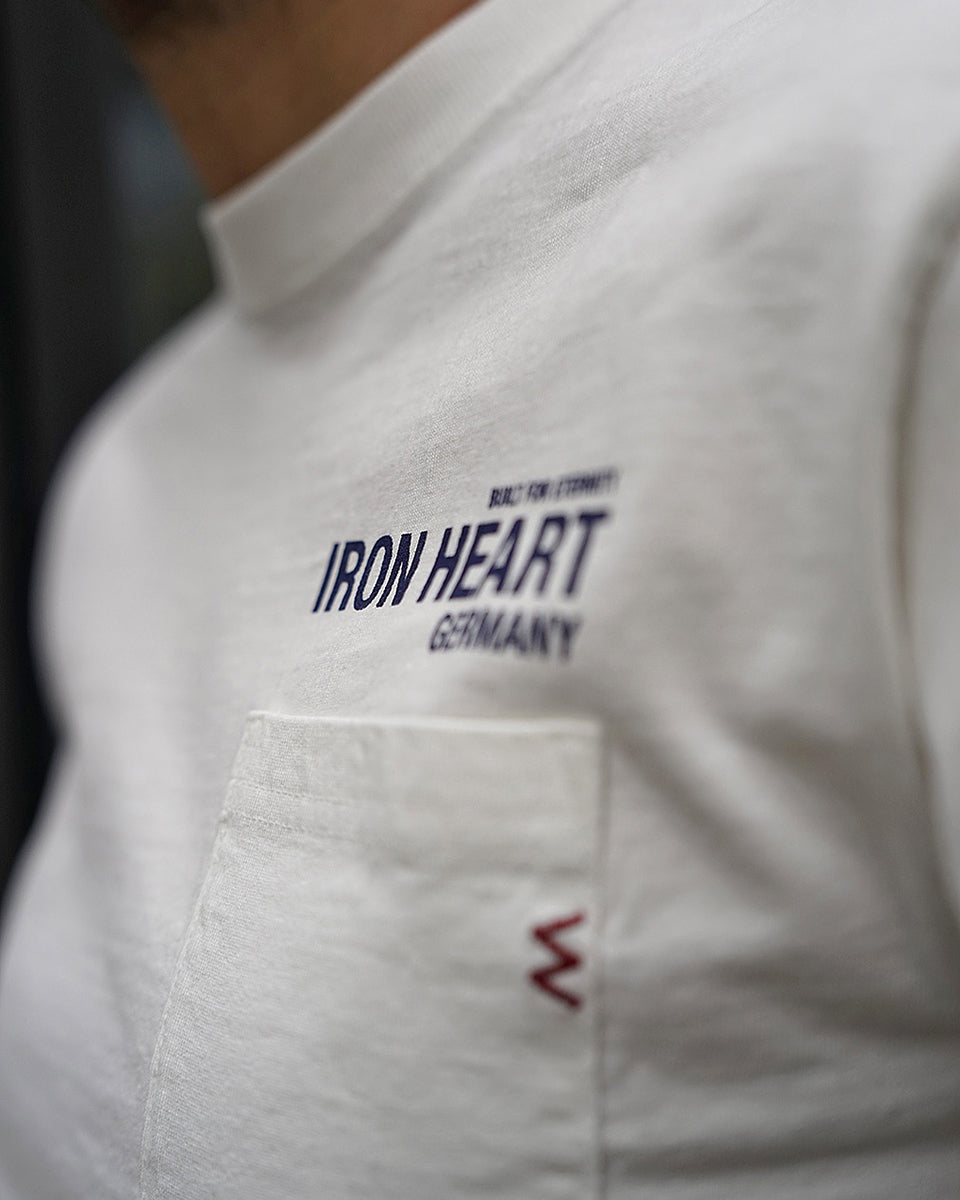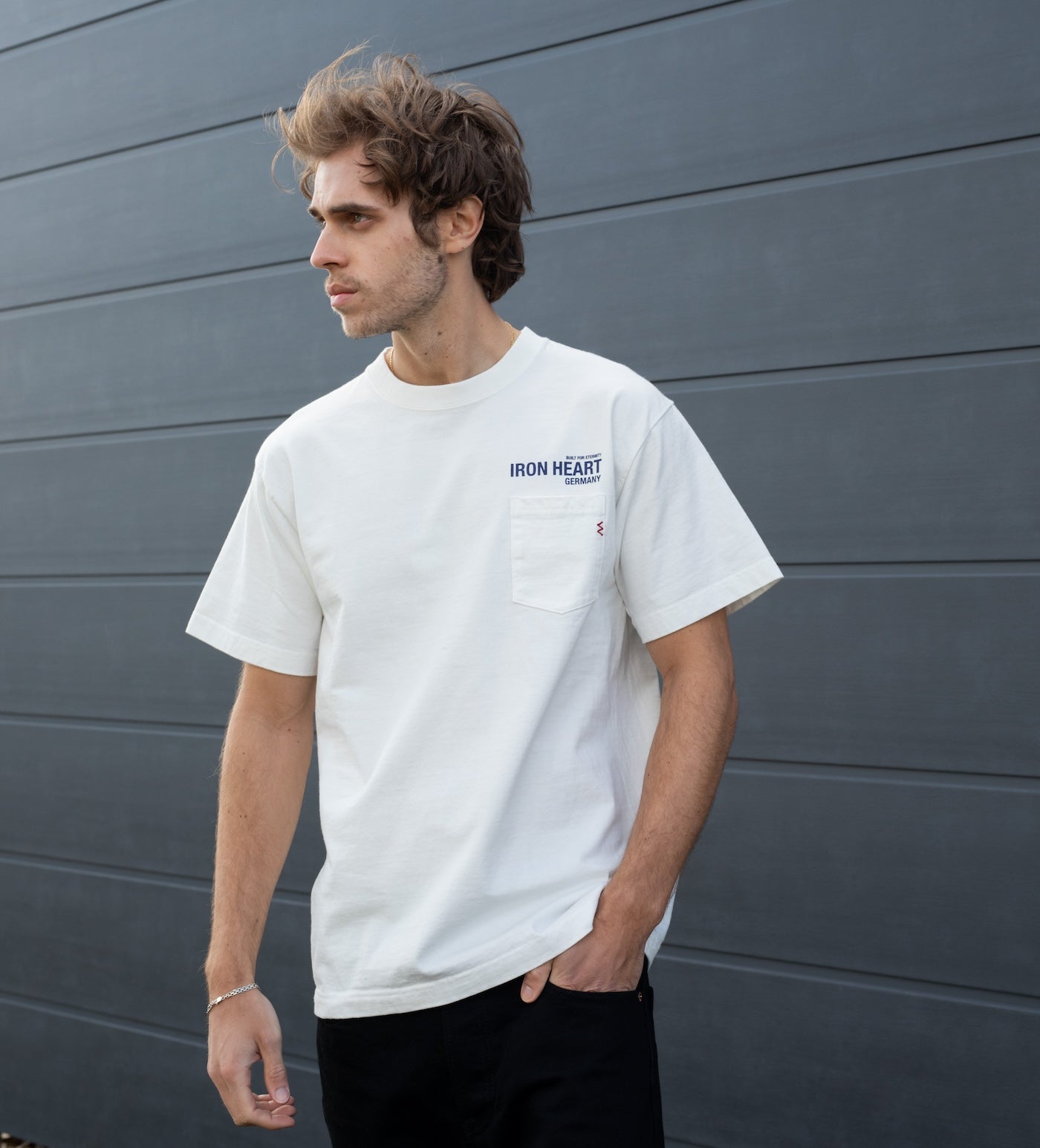 IHT-IHG-7-P-WHT/2 - Iron Heart Germany 7.5oz Loopwheel Crew Neck Pocket T-Shirt - White