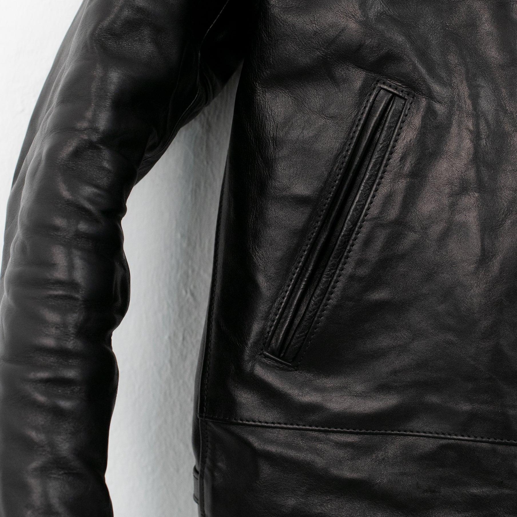 Image showing the SB-MV-HO-BLK - Simmons Bilt "Maverick" Japanese Horsehide Jacket - Black which is a LEATHER JACKETS described by the following info IHSALE_M23, Jackets, LEATHER JACKETS, SIMMONS BILT, Tops and sold on the IRON HEART GERMANY online store